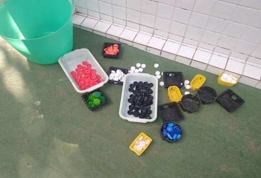 A turma do sol já conta com uma coleção de tampinhas bastante volumosa.