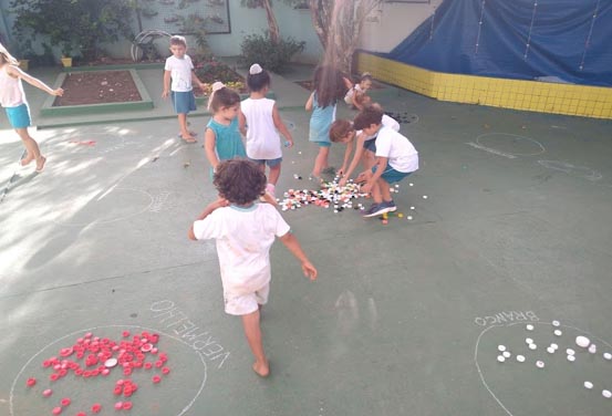 O Infantil V, Turma do Sol, começou em março desse ano uma coleção de tampinhas. Essa proposta oferece um contexto riquíssimo para explorar as ideias matemáticas como contagem, somar, subtrair, classificar, seriar, jogar e muitas outras.