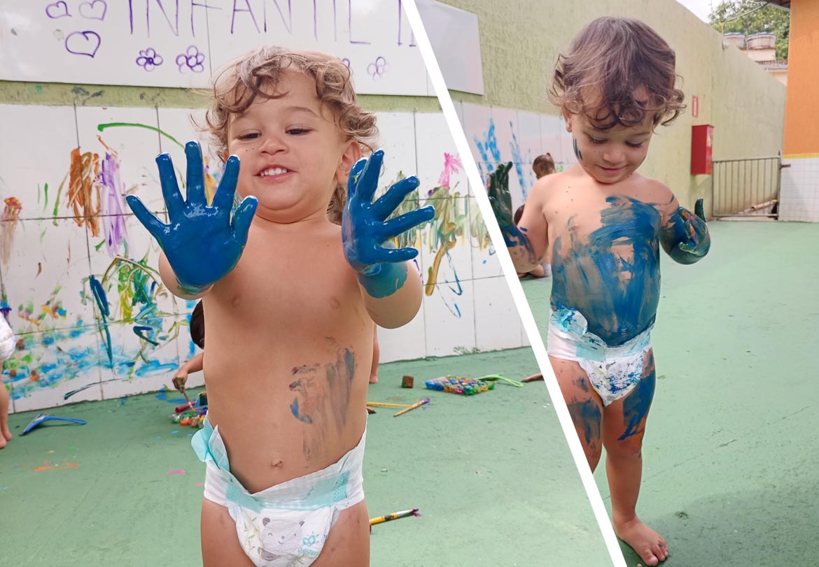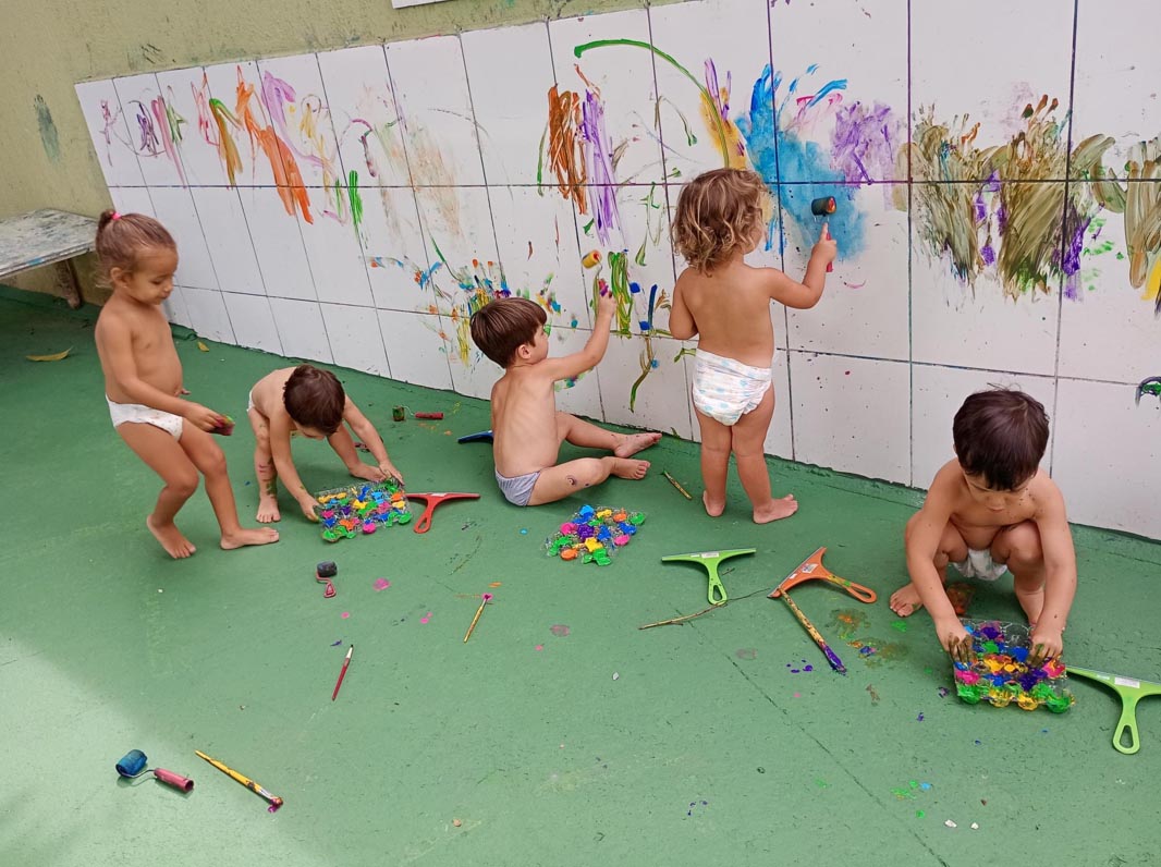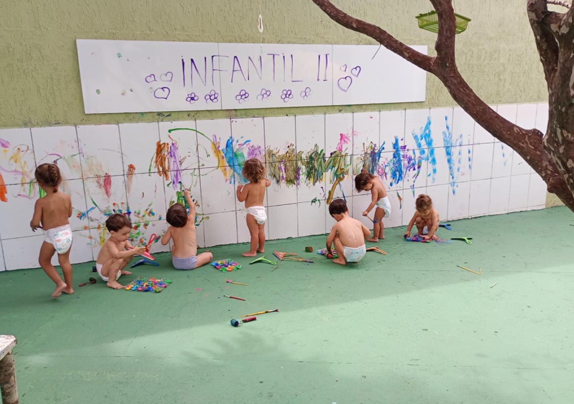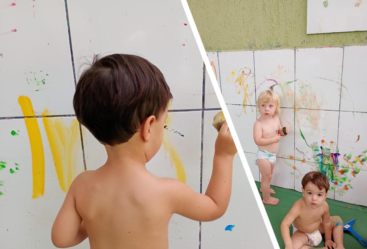 A turma do Infantil II, foi convidada a realizar uma atividade de pintura no azulejo, proporcionando um momento rico em experimentação e descoberta.