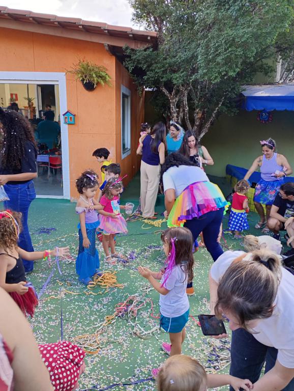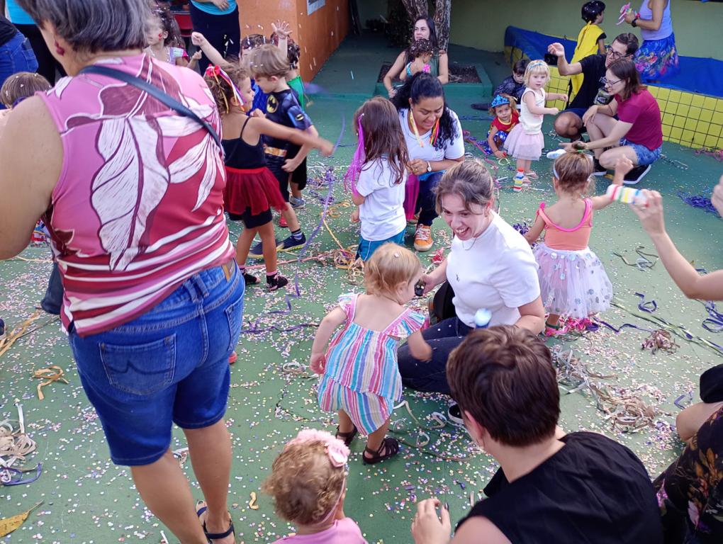 No dia 27/02, promovemos nosso tradicional “Bailinho de Carnaval” com direito à fantasia e à presença das famílias. Foi uma delícia acompanhar a animação das crianças e a alegria por compartilharem esse momento com seus familiares. Entre confetes e serpentinas, desfilamos pela escola animados pelo Pedro (nosso professor de música) e seus amigos. Foi demais!